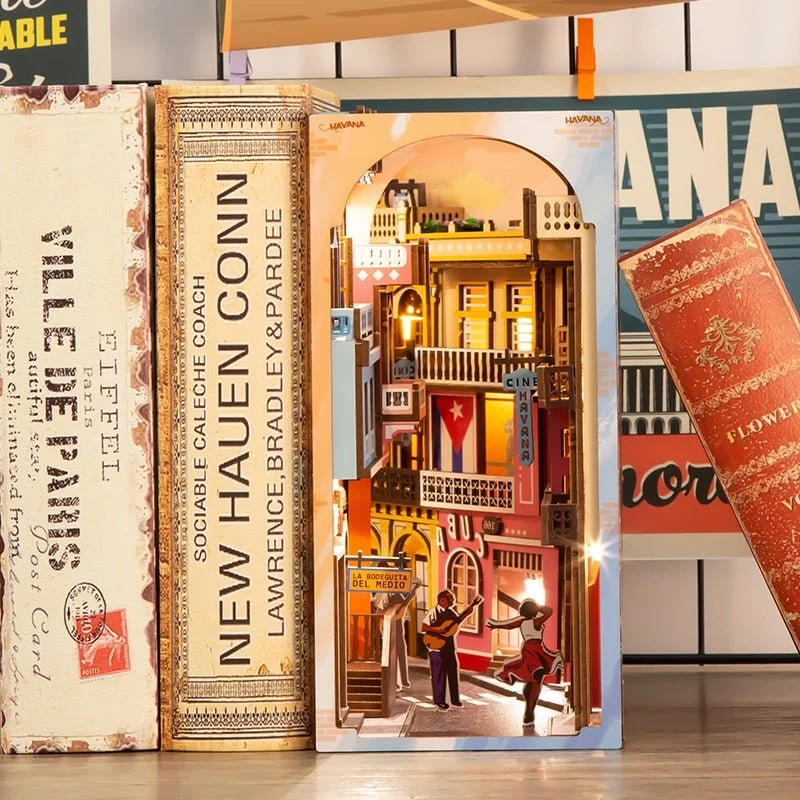 Are you feeling a bit bored with your bookshelf or reading area? Here's a super easy and creative way to help you with it - use the book nook as a shelf insert! Decormini DIY book nook kit is a self-assembly bookshelf decoration piece in the form of a miniature house. We offer several marvelous scenes for you to choose from - Sakura Densya Tokyo Street, Magic Alley, Time Travel Station, and Sunshine Town. Each book nook kit is designed with so many interesting details and has an amazing story behind it. Have fun building these beautiful book nook kits, and get ready to add some magic to your bookshelf after finishing the artwork.