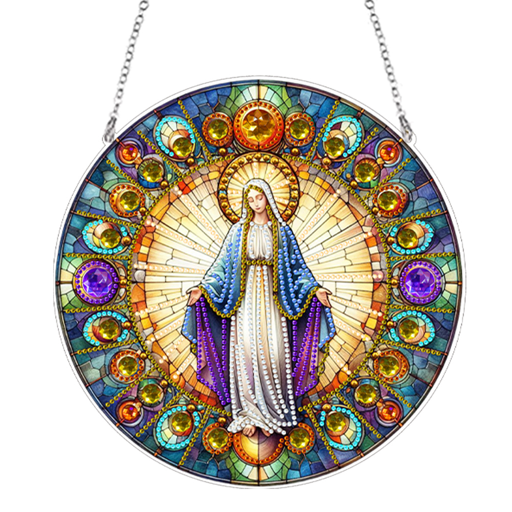 (Upgrade Size)DIY Diamond Painting Art Pendant Colorful Stained Glass Hanging Ornament Kit(Goddess)