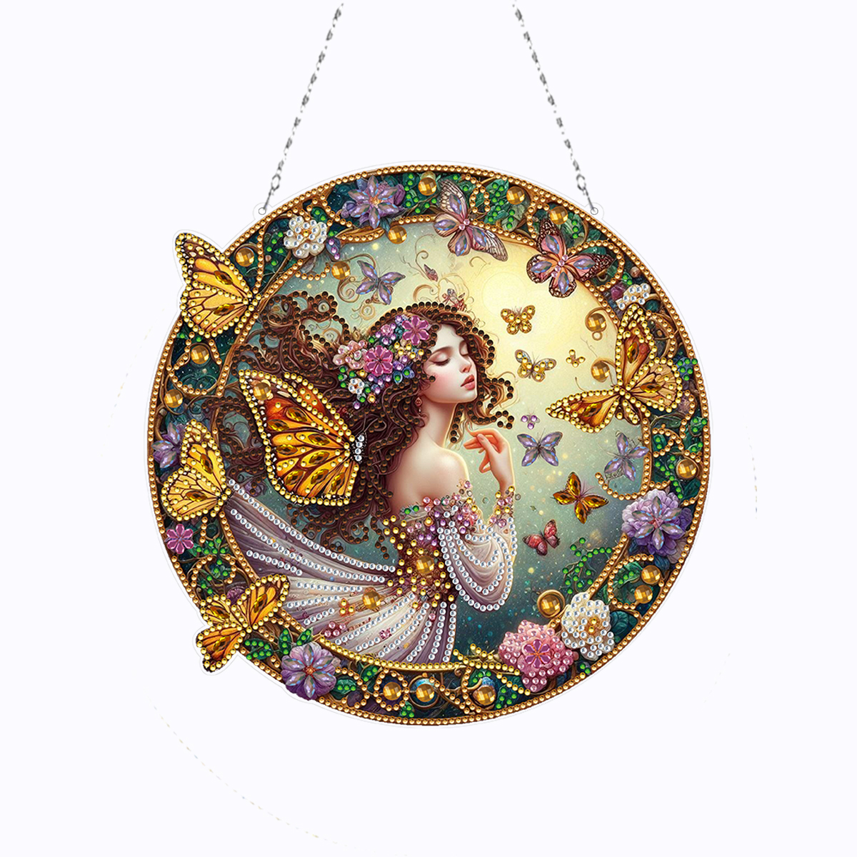 (Upgrade Size)DIY Double Sided Effect Diamond Painting Hanging Pendant Kit (Butterfly Girl)