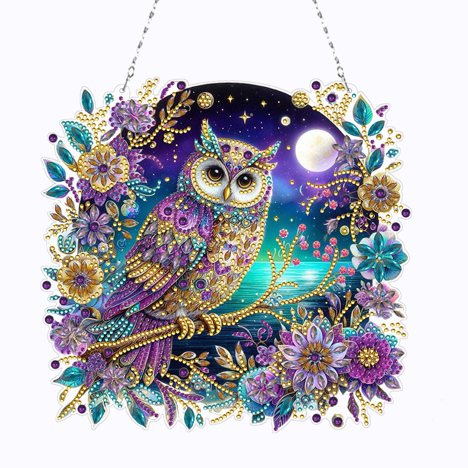 (Upgrade Size)DIY Double Sided Effect Diamond Painting Hanging Pendant Kit (Owl)