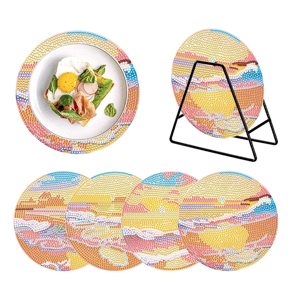 4PCS Acrylic Diamond Painting Placemats for Dining Table Decor Kit (Seaside)