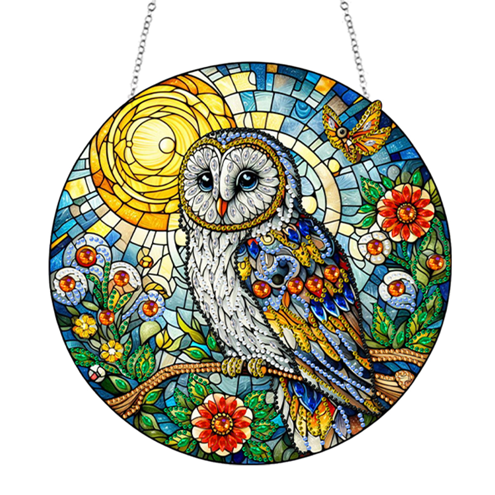 (Upgrade Size)DIY Diamond Painting Stained Glass Panel Decorative Home Garden Decoration Hanging Kit(Owl)