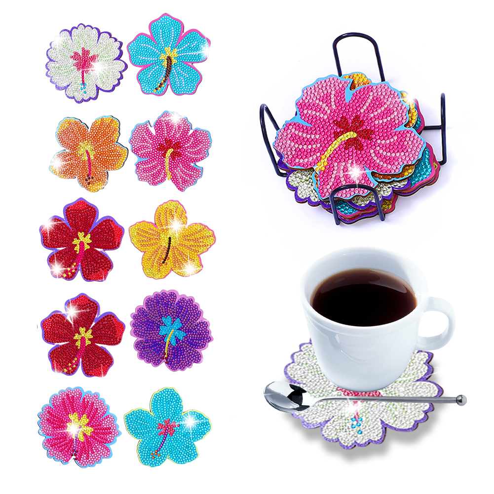 10pcs 5D DIY Diamond Painting Wooden Coaster Cup Cushion Kit
