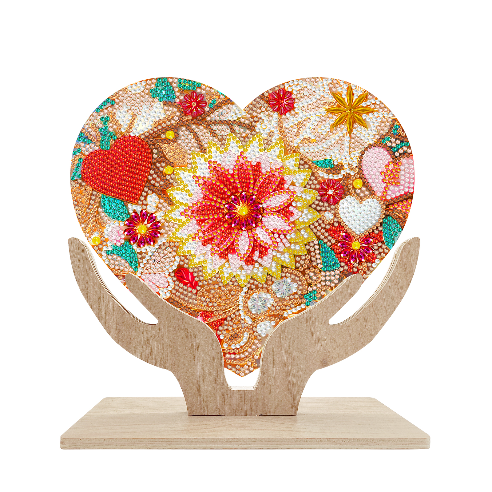 5D DIY Special Shape Diamond Painting Wooden Heart Shape Desk Ornament Decor Kit