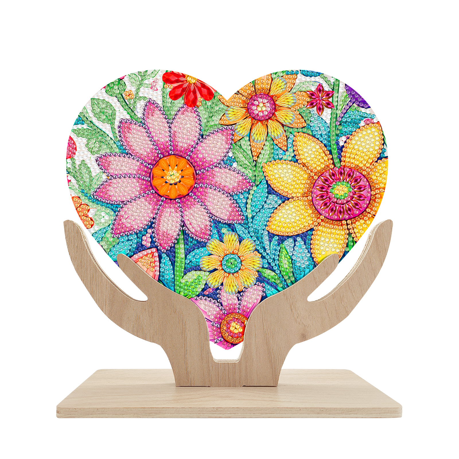5D DIY Special Shape Diamond Painting Wooden Heart Shape Desk Ornament Decor Kit