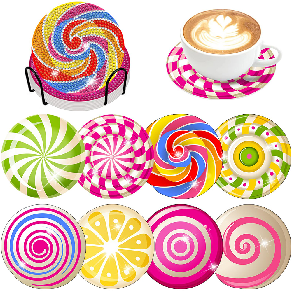 8PCS DIY Acrylic Diamond Painting Art Coaster Kit with Holder(Candy)