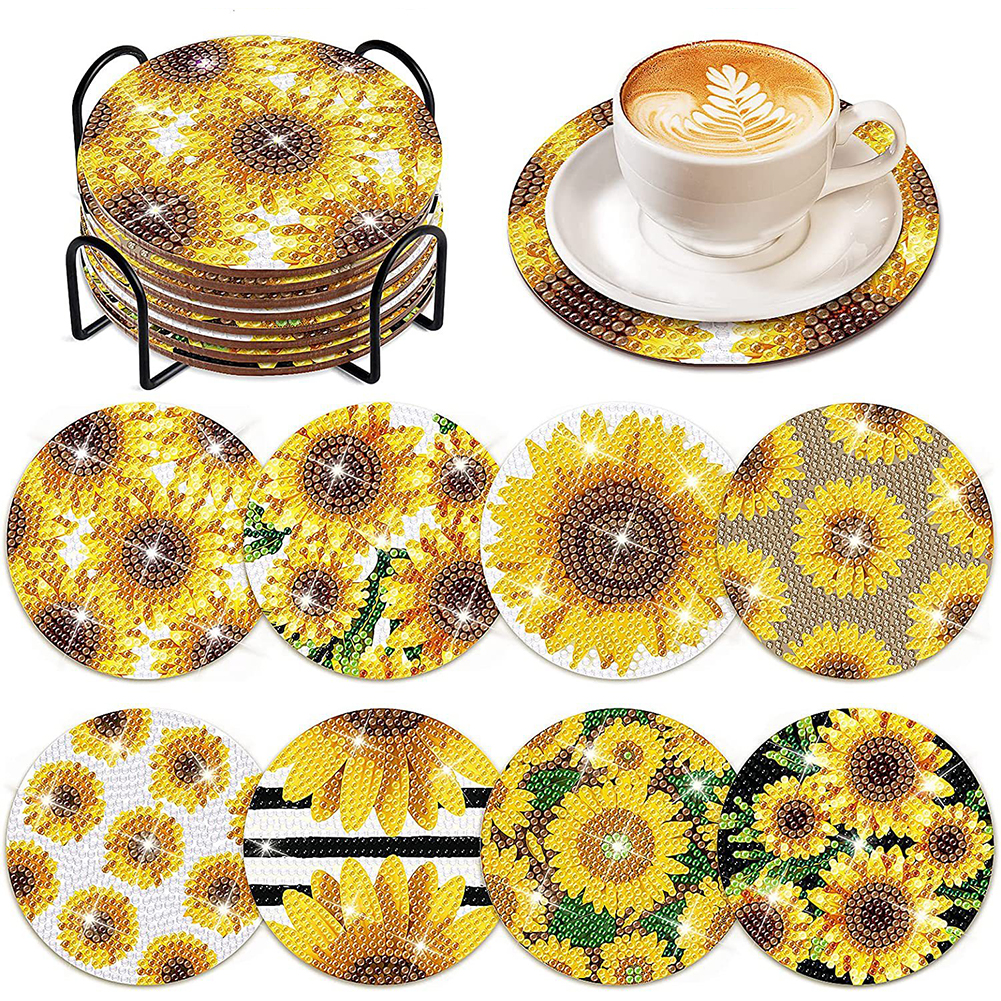 8PCS Wood Special Shape Diamond Painting Coasters Kits (Sunflowers)