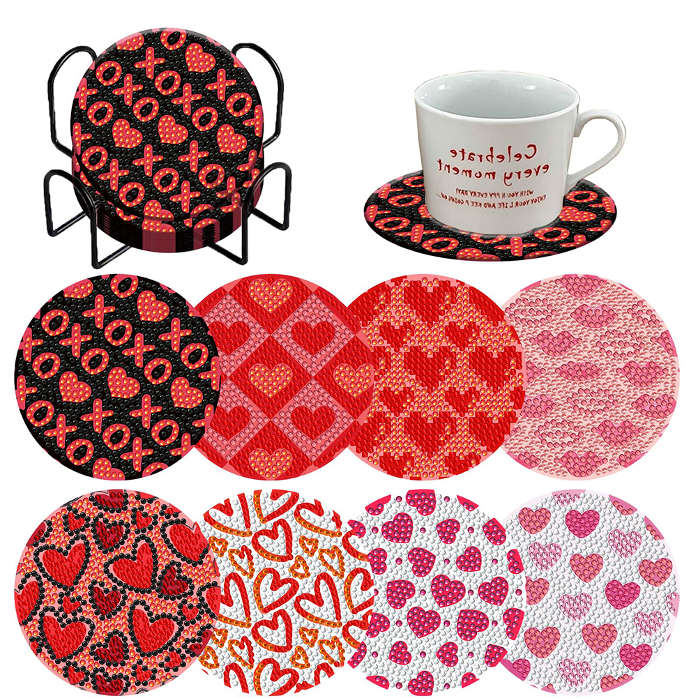 8PCS Wooden Diamond Painting Coasters Kits for Adults Kids (Valentines Day Love)