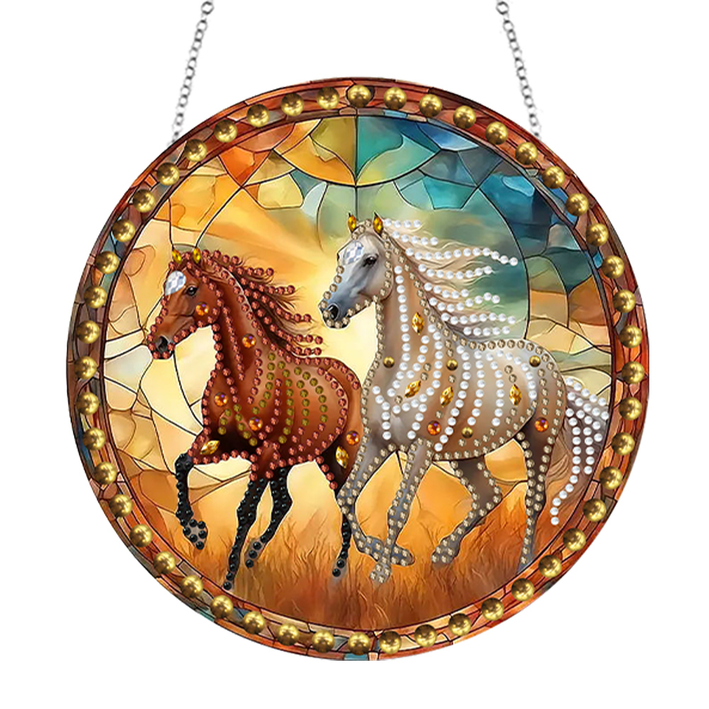 DIY Diamond Painting Art Pendant Colorful Diamond Drawing Hanging Ornament Kit (Horse)
