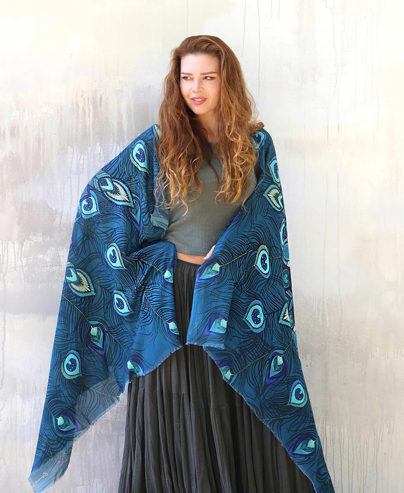 When laid flat finished scarf measures Approximately: 200 cm length by 100 cm in width (79" x 39" inches)