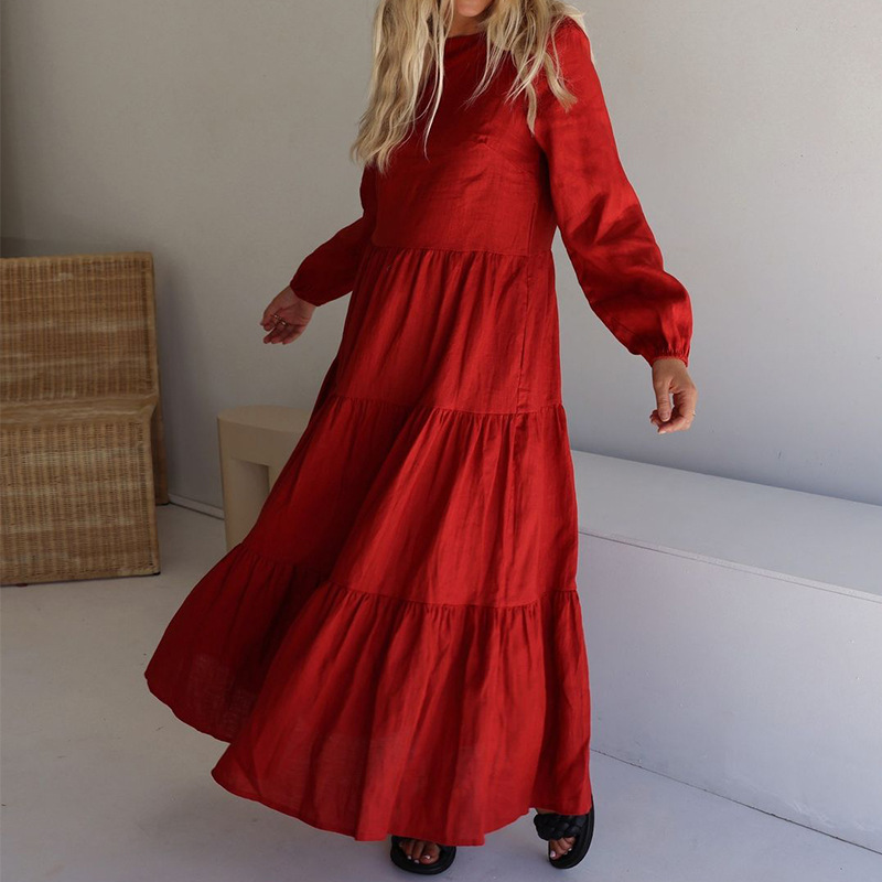 Cotton Round Neck Tiered Beach Boho Dress