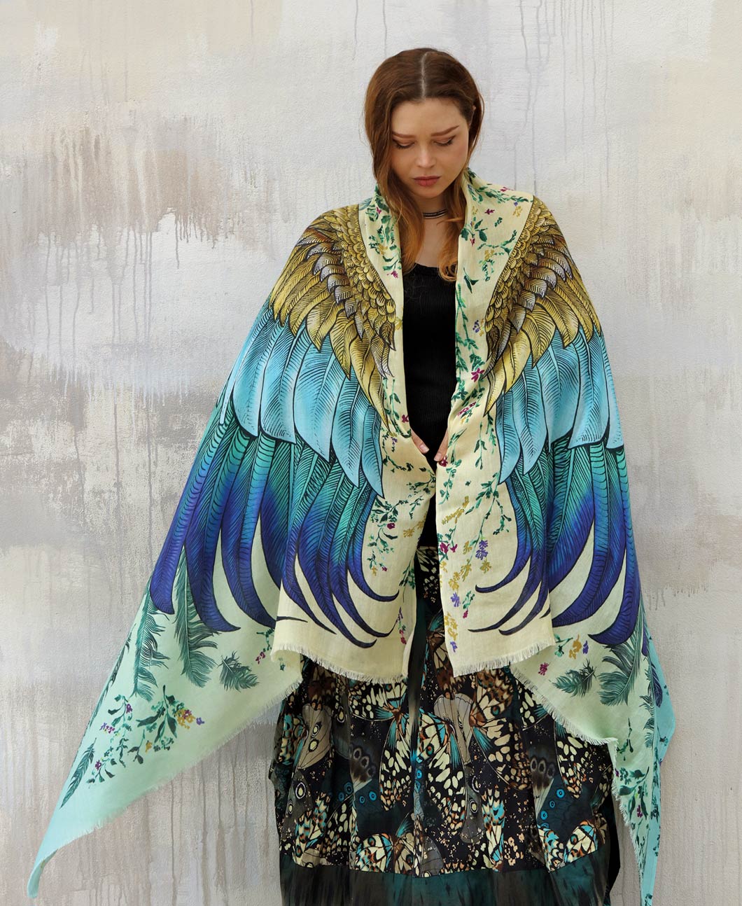Hand-painted and digitally printed Art of Wide - bohemian wings scarf, this highly detailed representation of Nature , Freedom and is my Labor of Love. Just put it over your shoulders to look & feel divine. This scarf would make the most amazing gift for your loved ones!