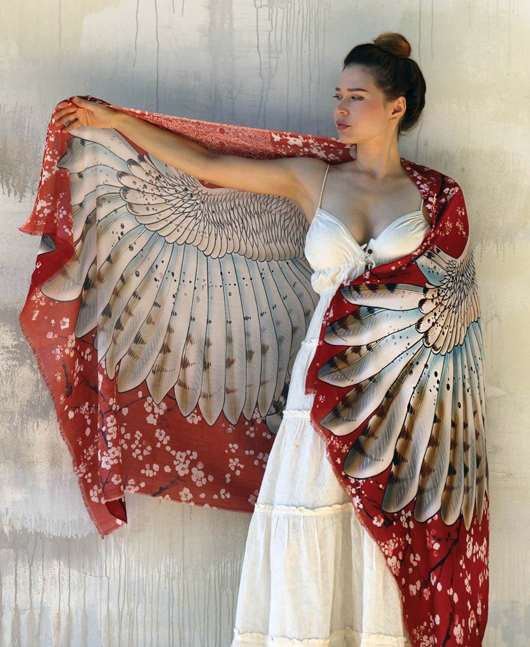 Hand painted and digitally printed Art of cherry Blossom Barn Owl. This extremely detailed design features Gorgeous flying over Cherry Blossoms. Lacy moon is her companion. Just put it over your shoulders to look & feel divine. This scarf would make the most amazing gift for your loved ones to treasure for years to come!