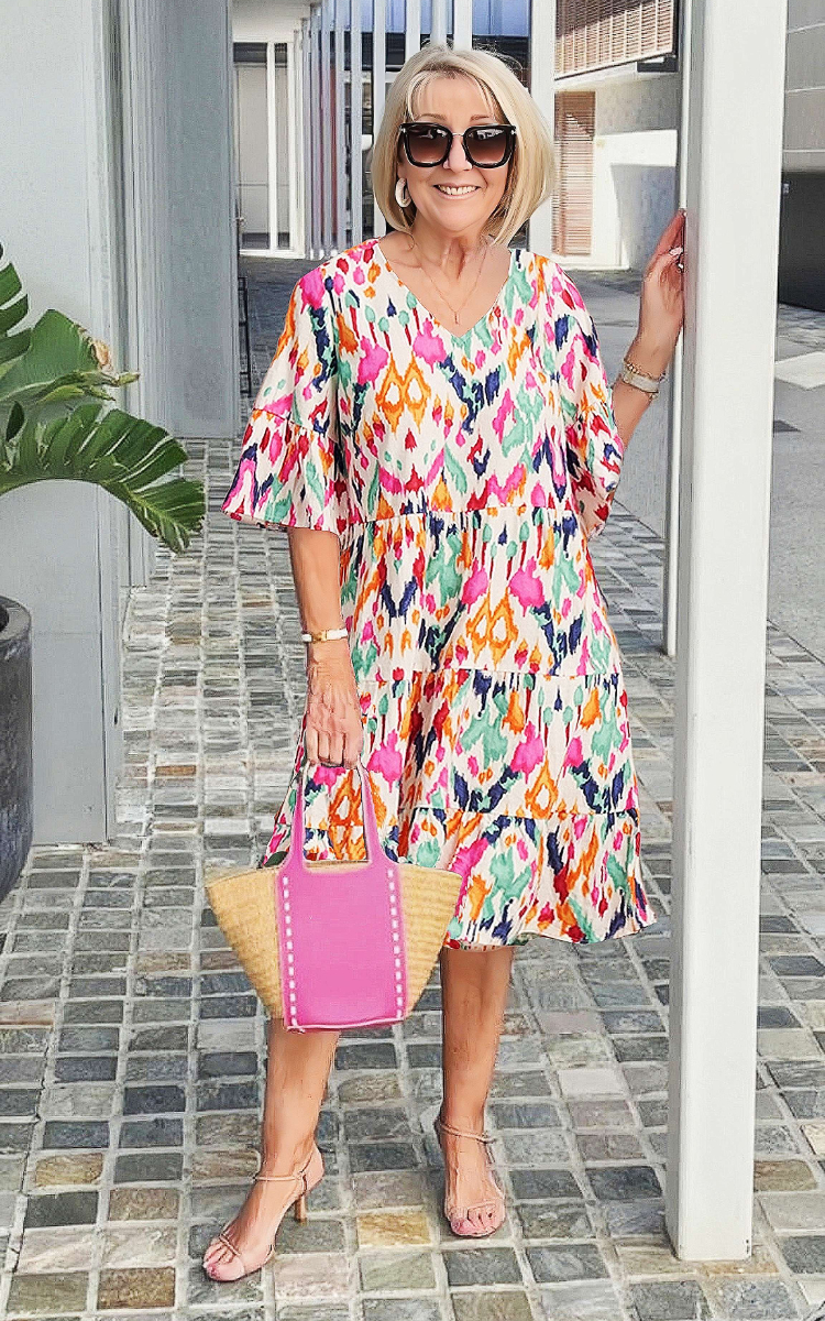 Chic Bell Sleeve V-neck Tunic Dress with Elegant Prints