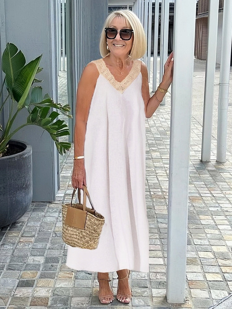 Cotton and Linen Plus Size Tunic Dress with Elegant Stitching