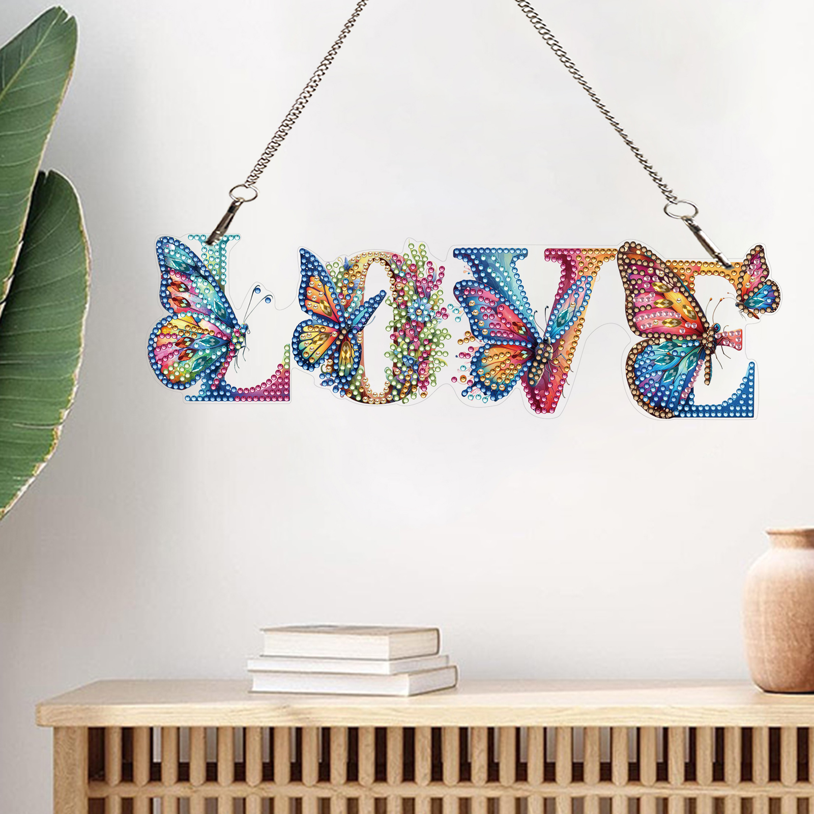 DIY Diamond Painting Stained Glass Panel Decorative Home Garden Decoration Hanging Kit(Love)