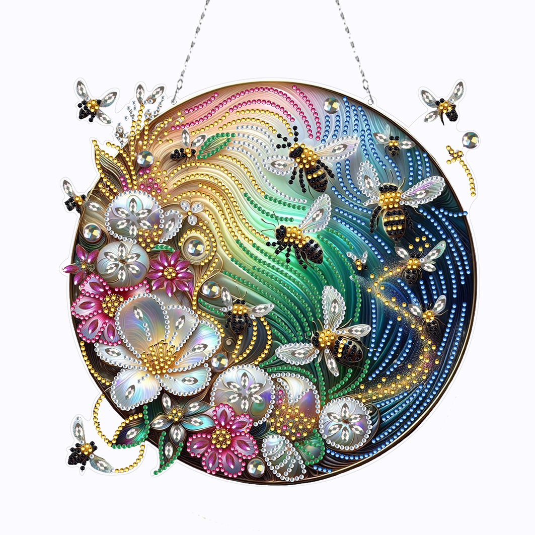 (Upgrade Size)DIY Double Sided Effect Diamond Painting Hanging Pendant Kit (Flower Bee)