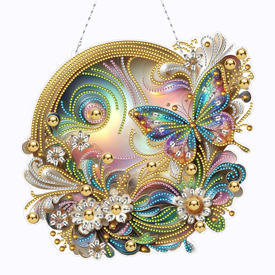 (Upgrade Size)DIY Double Sided Effect Diamond Painting Hanging Pendant Kit (Flower Butterfly)