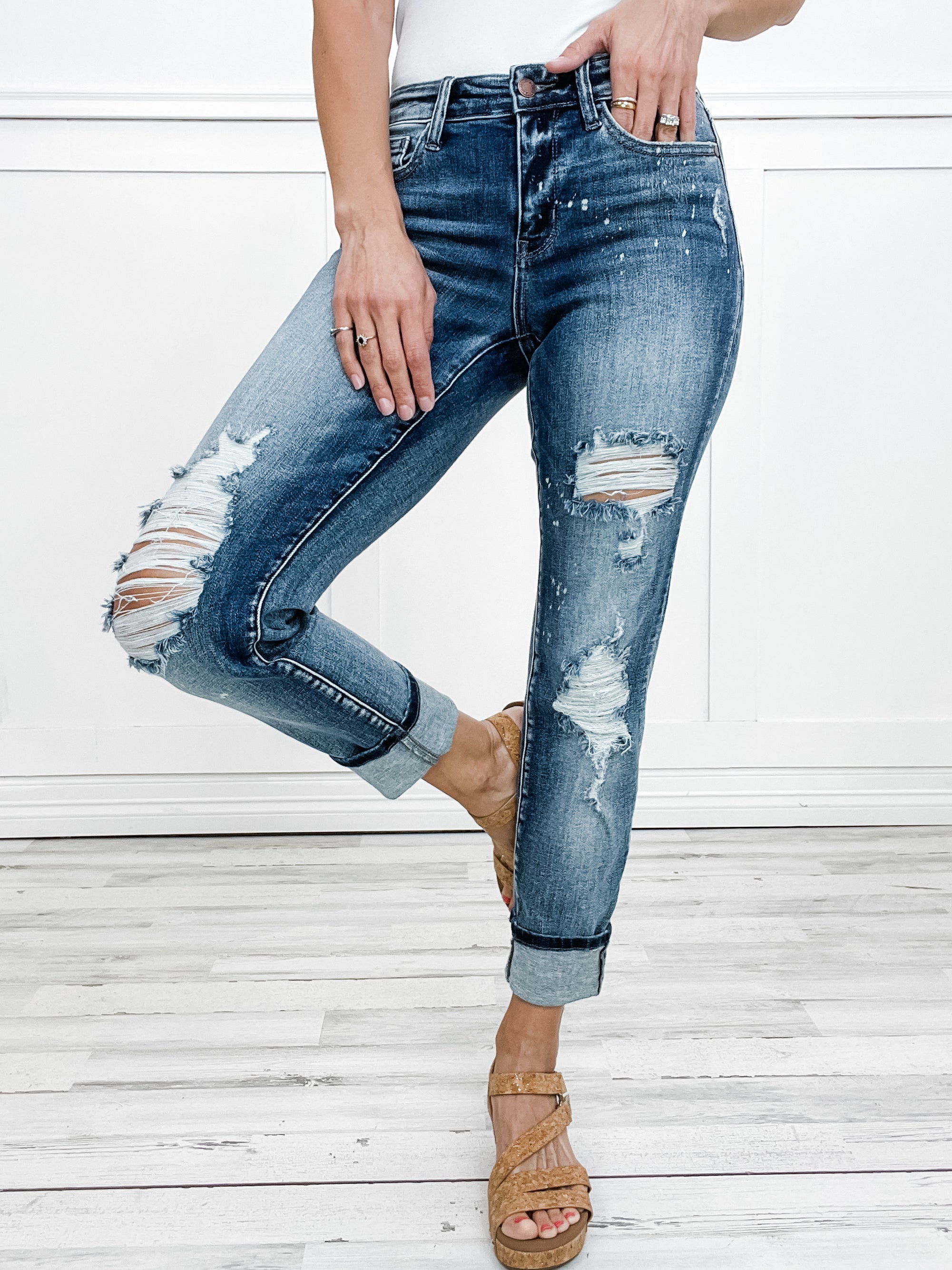 Judy Blue "Heidi" Destroyed Bleach Splattered Boyfriend Jean