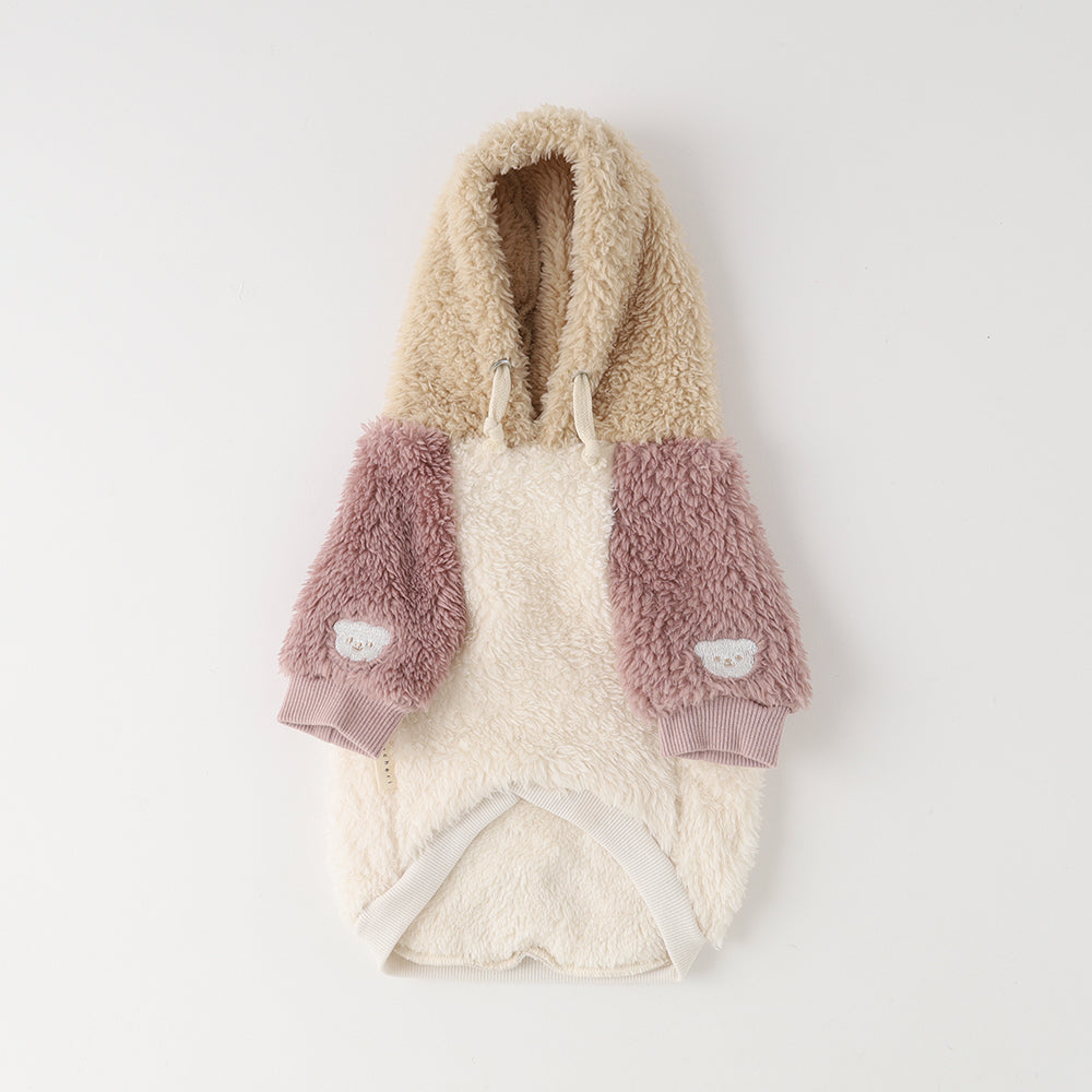 Kuma -san embroidery bicolor food hoodie