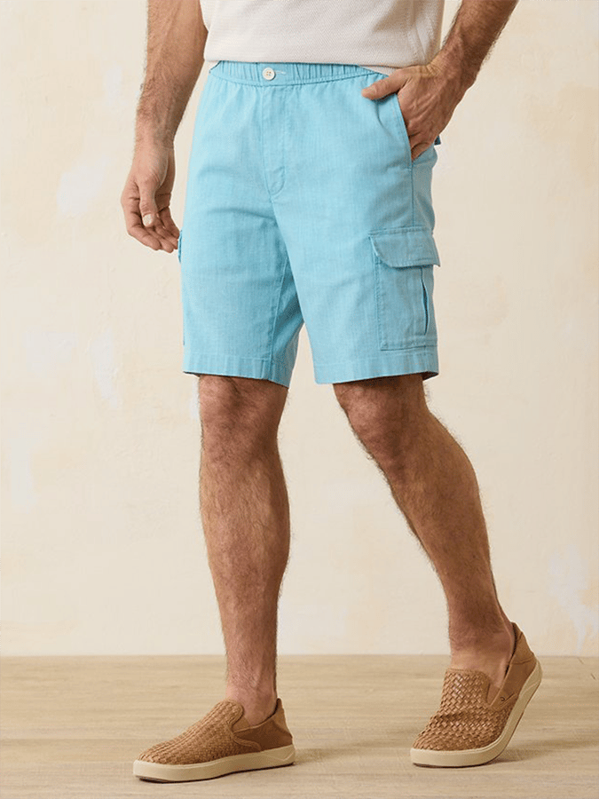 Men's Resort Solid Color Multi-Pocket Design Button Casual Shorts