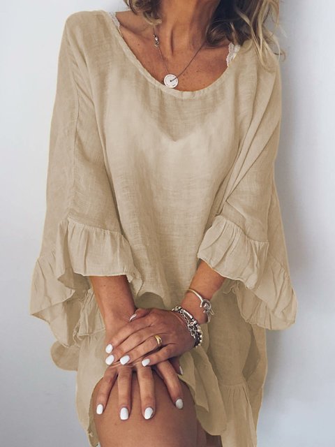 Patchwork Ruffle Sleeve Cotton Solid Color Dress