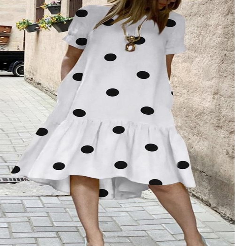 Plus Size Polka Dot round Neck Short Sleeve Printed Dress