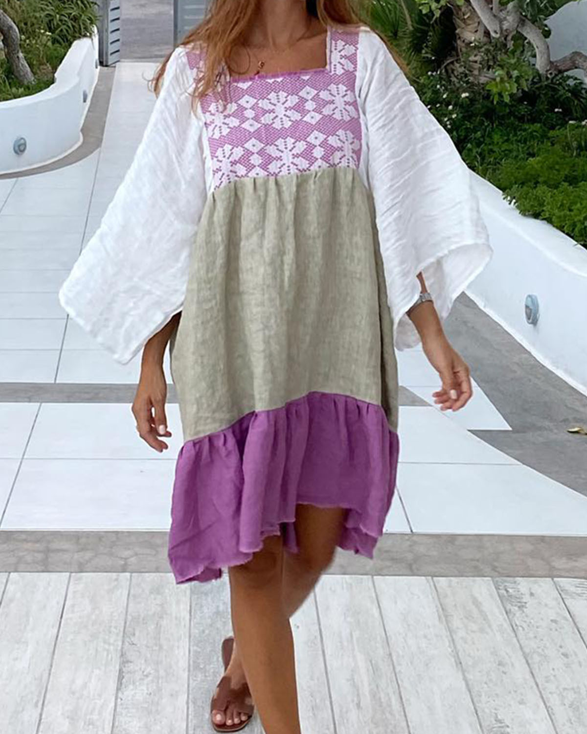 Resort-style panelled linen dress b93d