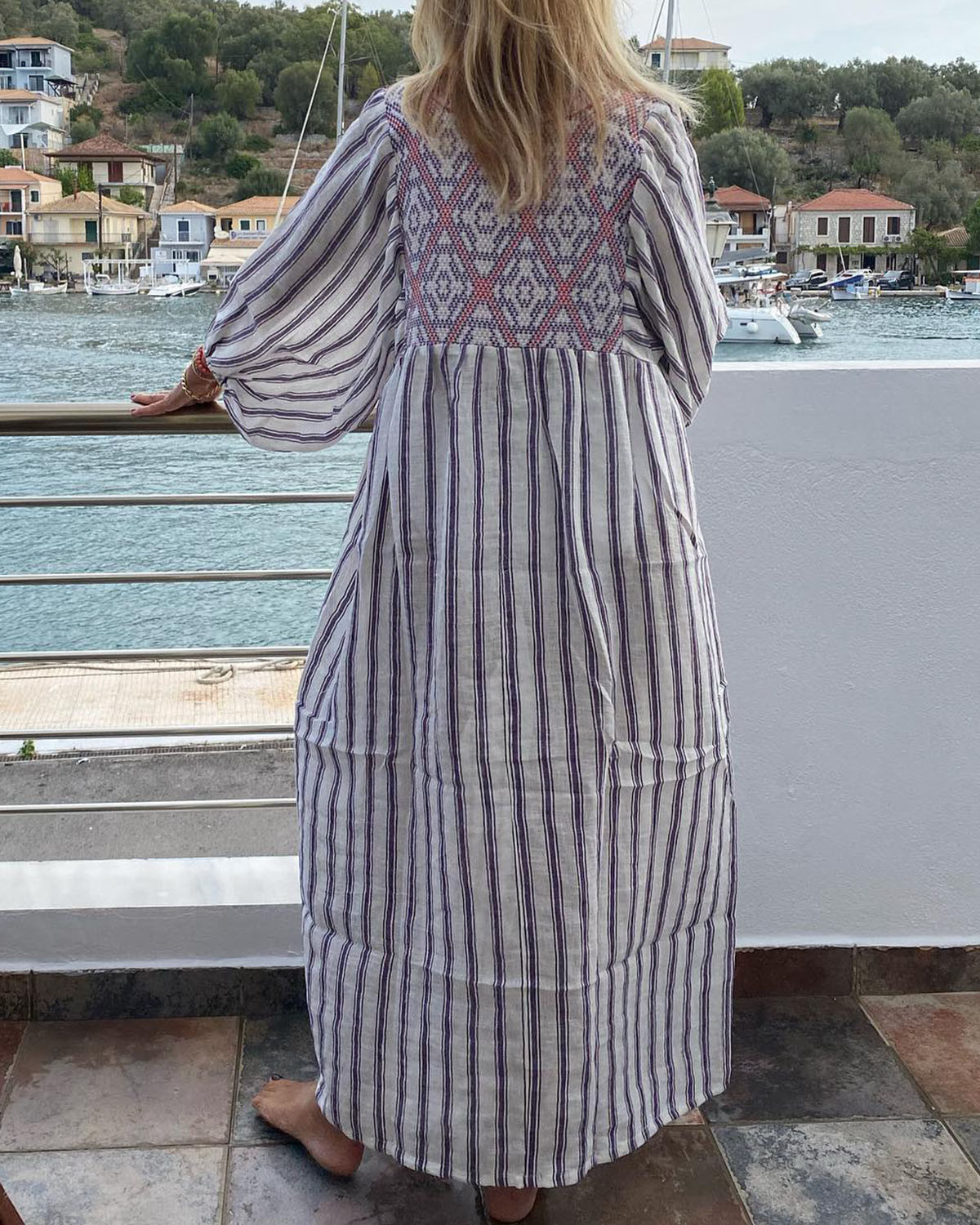 Resort-style panelled linen dress c223