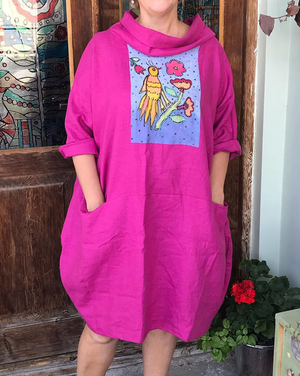 Resort-style panelled linen dress 3b7b