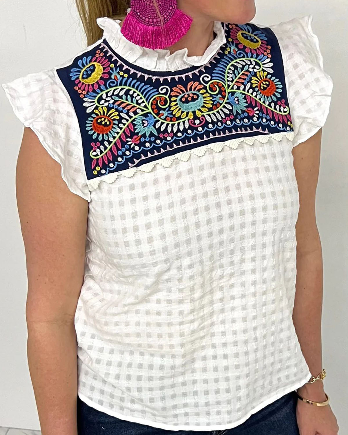 Resort-style panelled linen top 8080