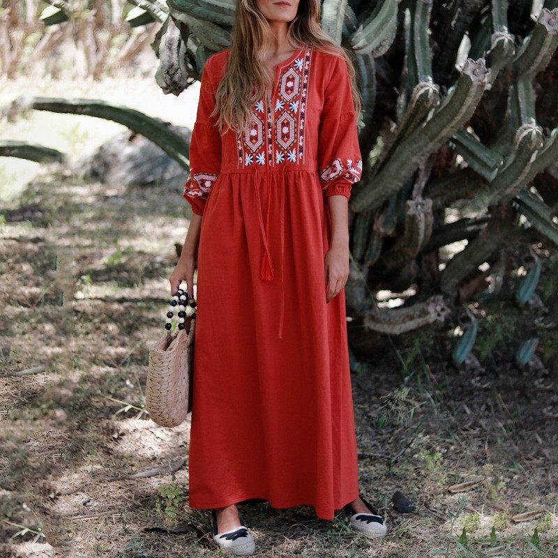 Resort-style Vacation Embroidered Cotton and Linen Dress 8224