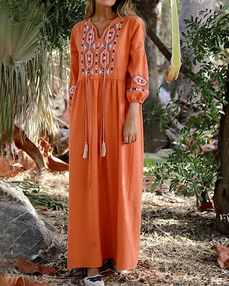 Resort-style Vacation Embroidered Cotton and Linen Dress d56a