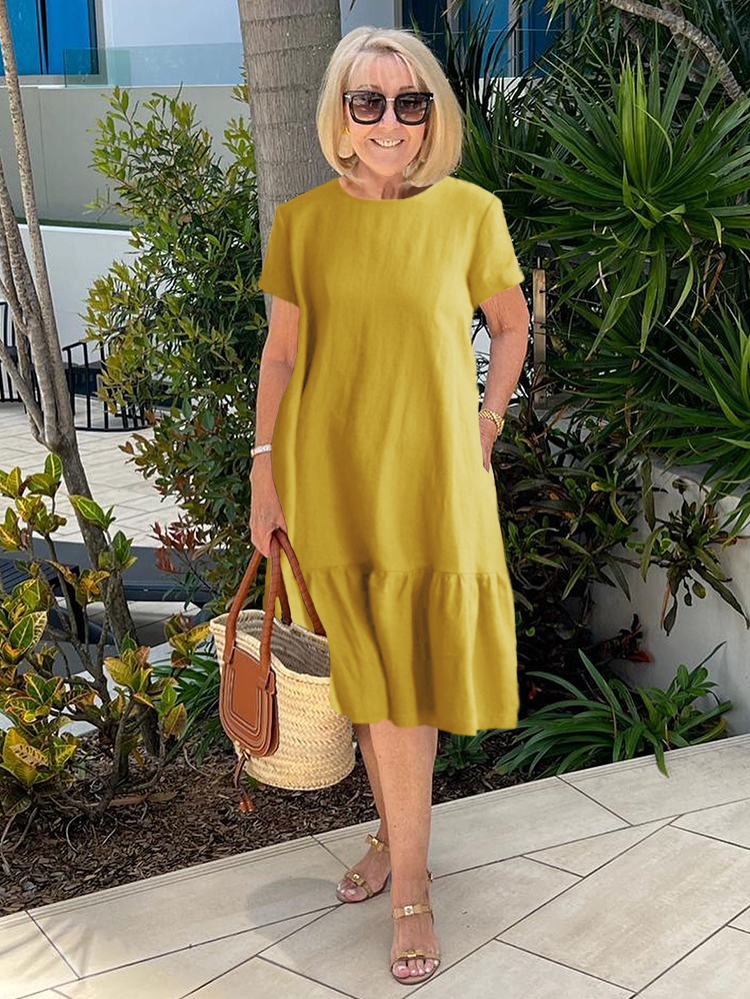 Round Neck Short Sleeve Ruffled Midi Beach Tunic Dress