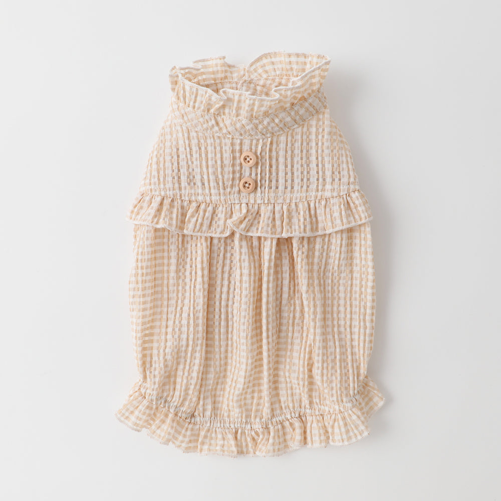 Sheer check frill button shirt