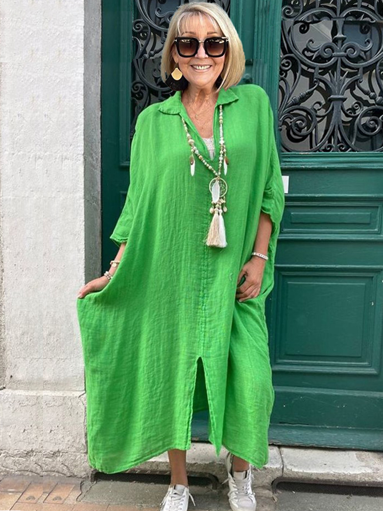 Plus Size Solid Color Casual V-neck Beach Maxi Dress