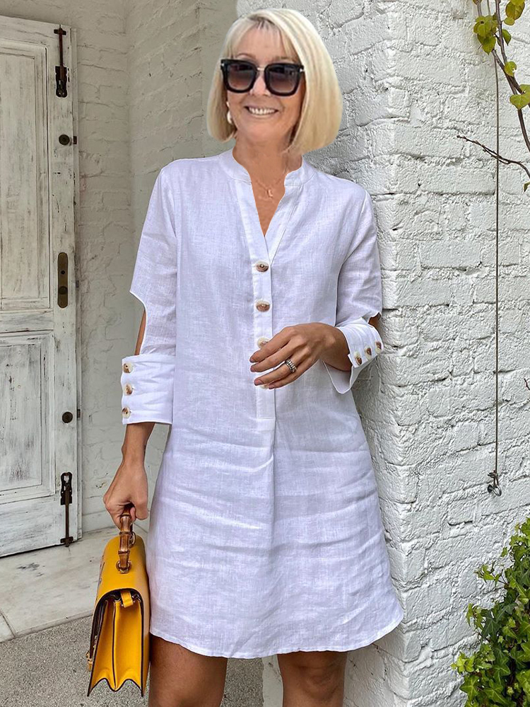 Stand Collar Casual Plain Mini Tunic Dress