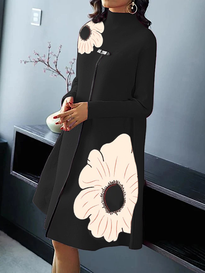 Plus Size Stand Collar High Elasticity Floral Loose Tunic Dress