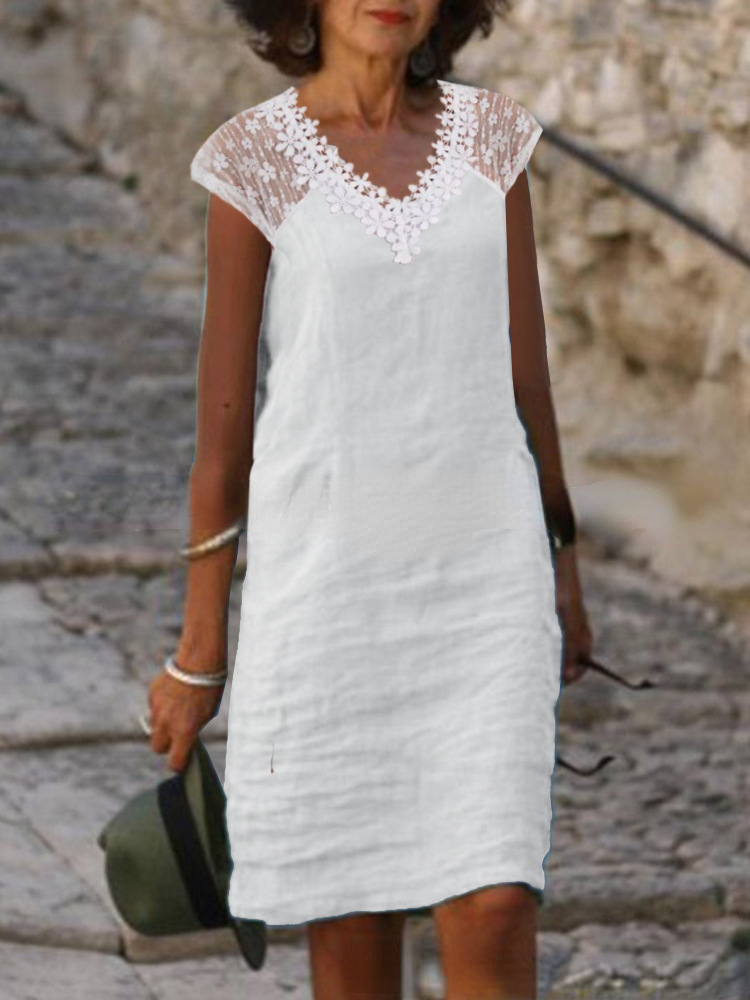 Summer Lace Stitching Straight Elegant Corset V-neck Dress