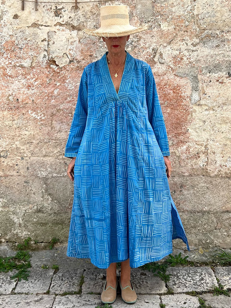 Contrast Print Loose Long Sleeve V-neck Dress