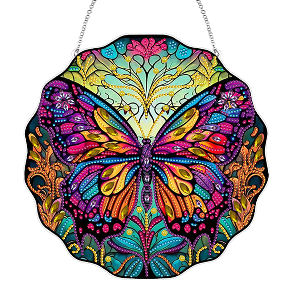 (Upgrade Size)DIY Double Sided Effect Diamond Painting Hanging Pendant Kit (Butterfly)