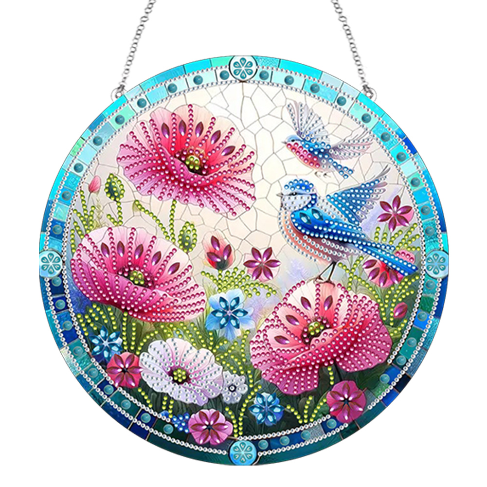 (Upgrade Size)DIY Double Sided Effect Diamond Painting Hanging Pendant Kit (Flower Bird)