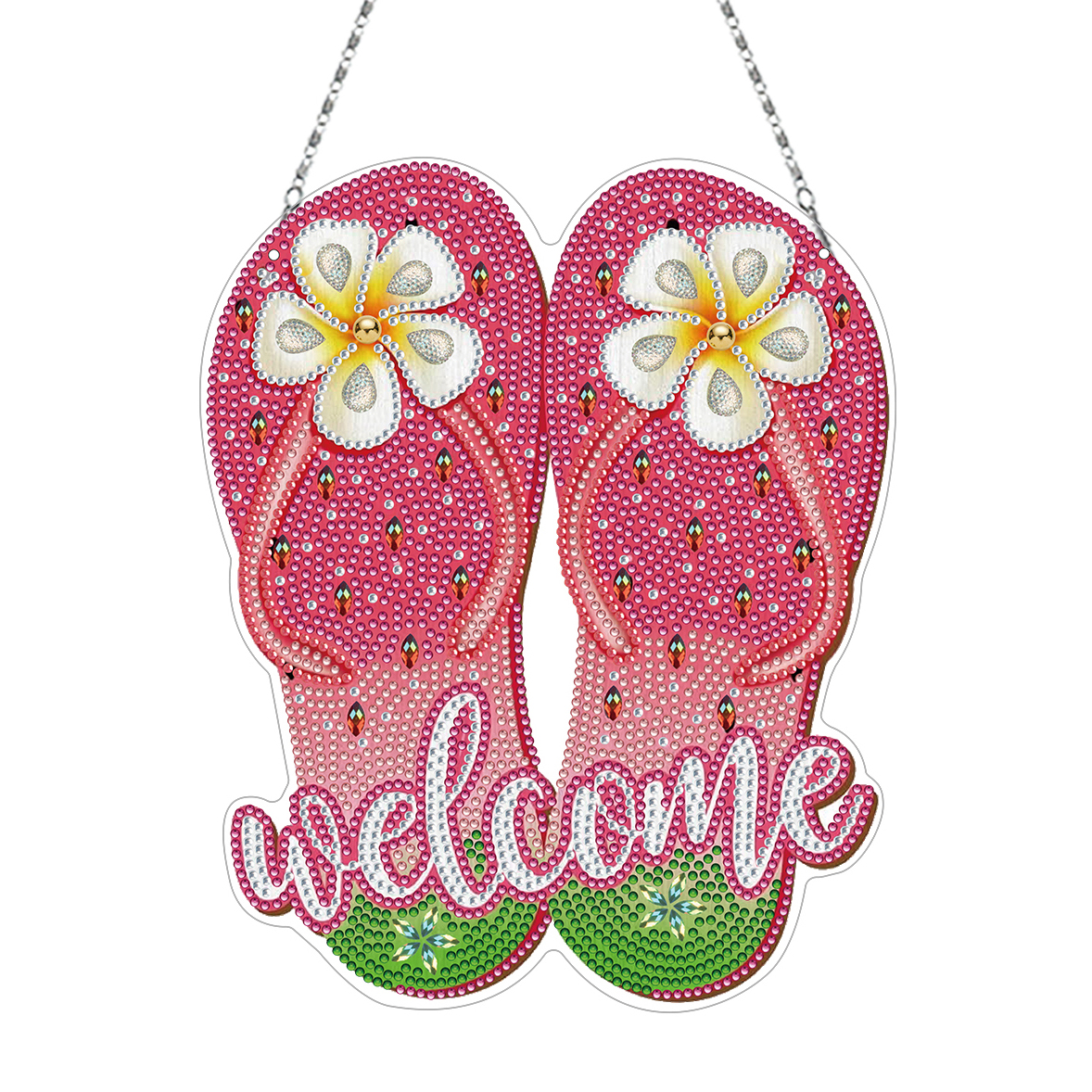 (Upgrade Size)DIY Double Sided Effect Diamond Painting Hanging Pendant Kit (Slipper)