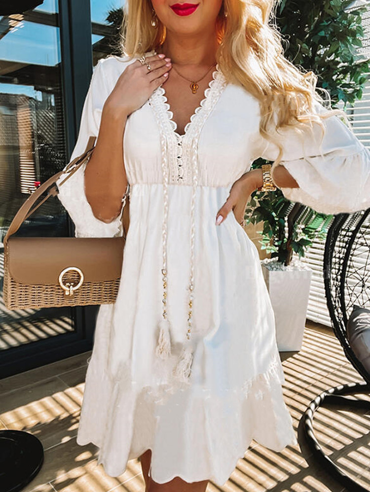 White Tassel Petal Three-Quarter Sleeve Casual Dress