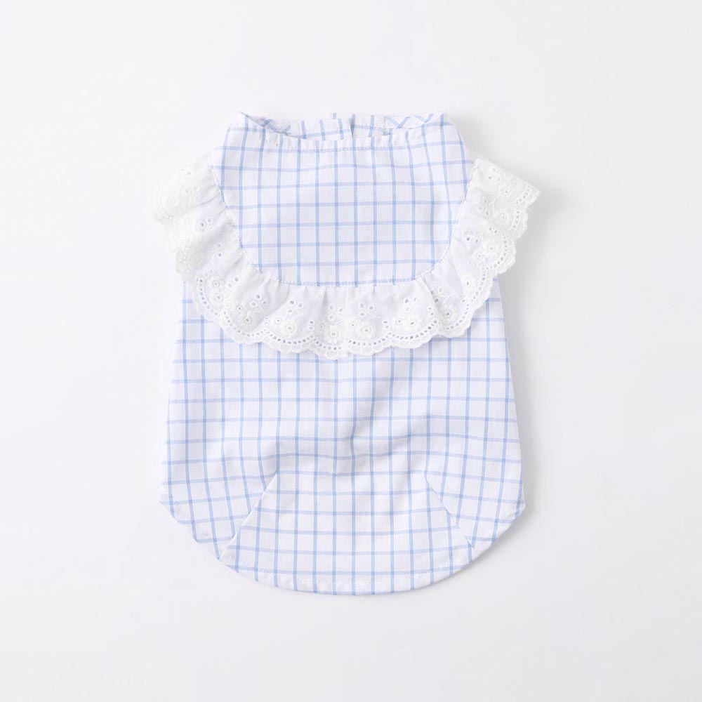 Window check lace blouse