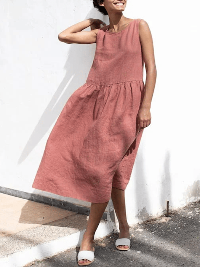 Women's Casual Solid Color Loose Cotton Sleeveless Dress