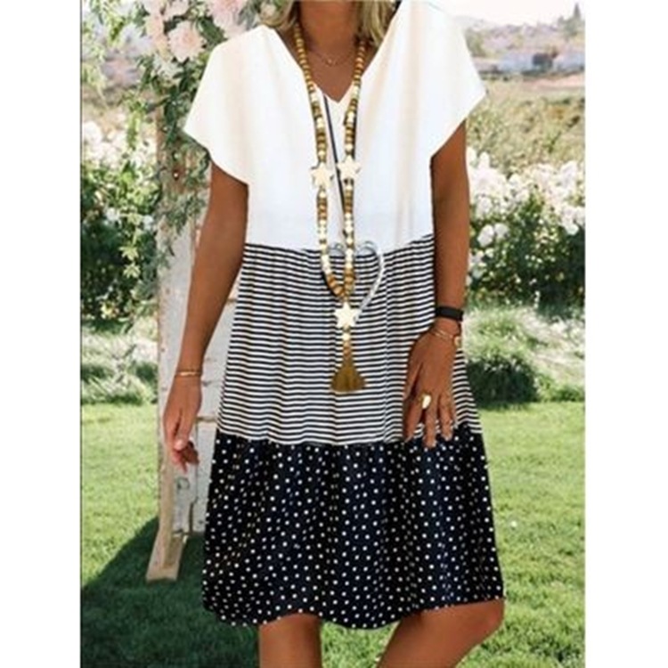 Women's Printed V-neck Short-Sleeved Tunic Dress