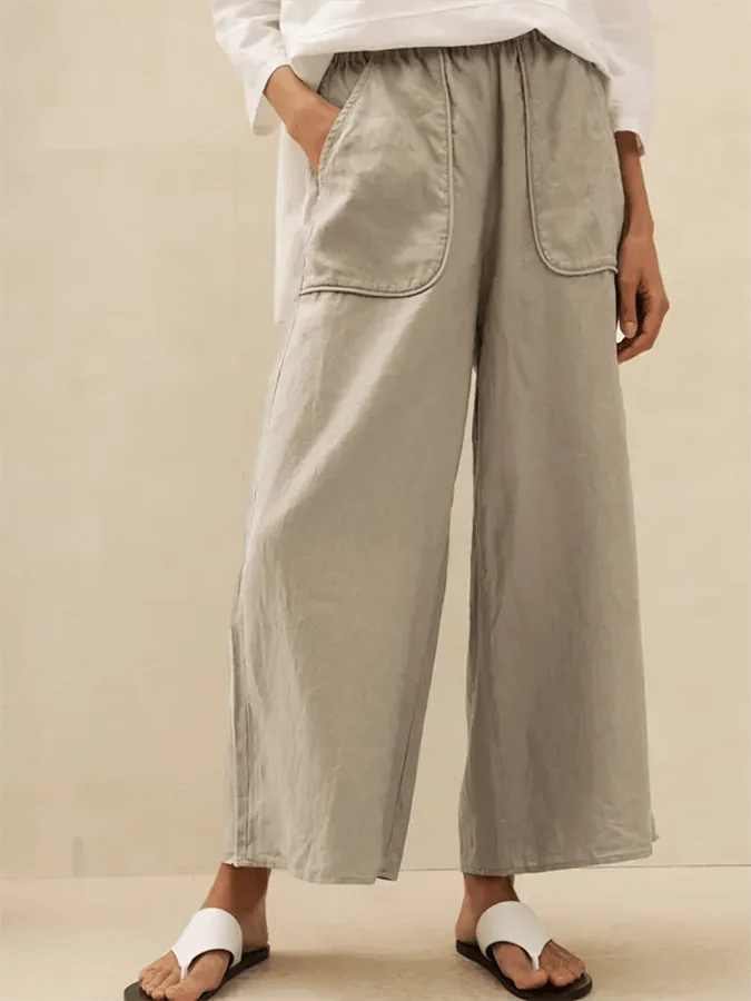 Women's Retro Solid Color Pocket Wide Leg Casual Pants