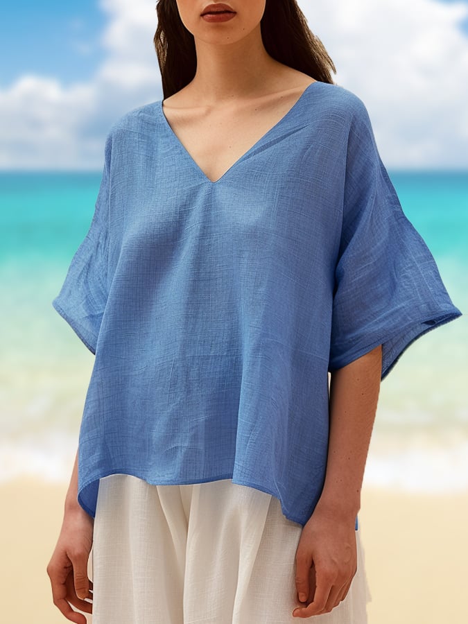 Women's Solid Color Casual Linen Shirt