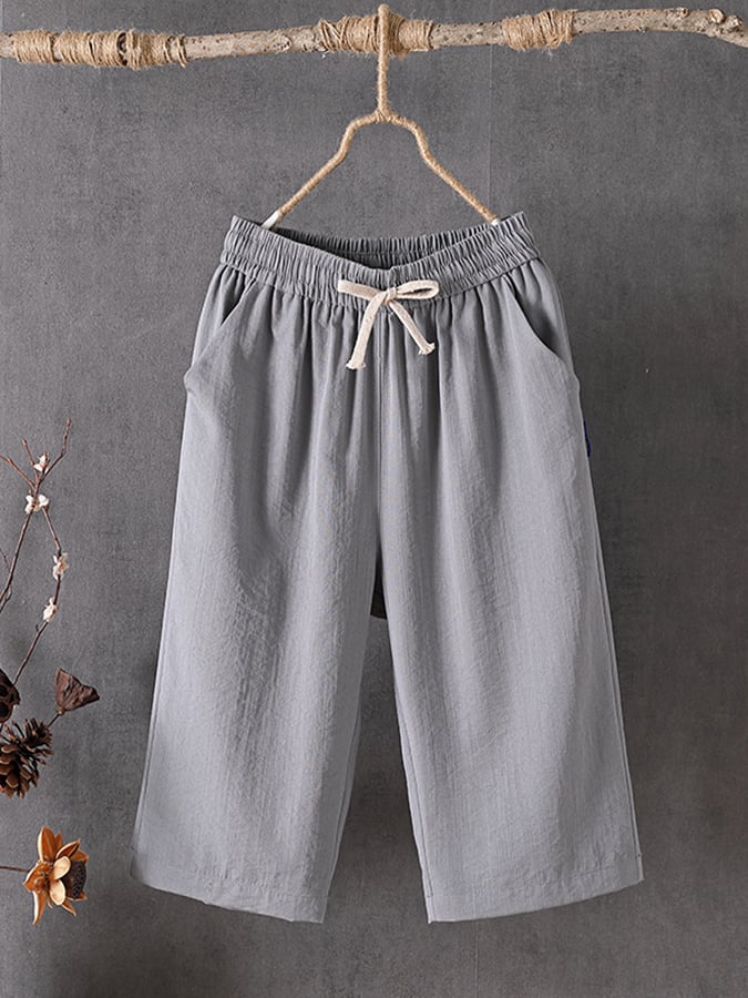 Women's Solid Color Simple Loose Casual Cotton And Linen Cropped Trousers